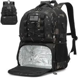 BISKLNDN Laptop Lunch Backpack for Men - 40L Large Capacity Work Backpack with Lunch Compartment and USB Post, RFID Insulated Cooler Backpack for Work, Travel, Picnic, Black CM