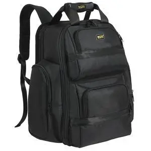 FASITE Tool Bag Backpack - Heavy Duty Professional Storage & Organizer for Contractor, Electrician, Plumber, HVAC, Large Front Flap Fit 13" -17" Laptops Notebook, Black