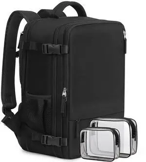 Beraliy Travel Backpack for Men Women, Large Carry On Backpack, Personal Item Bag Airline Approved, 17 inch Laptop Backpack, Business Work Gym Weekender Bag, Black