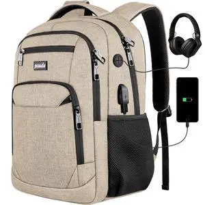 XQXA Travel Laptop Backpack, Business Backpack with USB Charging Port and Password Lock, Durable Water Resistant Computer Bag Fit 15.6 Inch Laptops for Men Gift