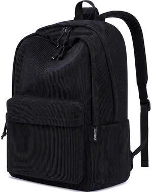 Energather Corduroy Backpack, Travel Backpack for Women and Men, Large Capacity Daypack Casual Backpacks for Daily Outings (Black)