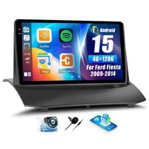 4G+128G Car Radio for Ford Fiesta 2009-2014 Android Replacement Upgrade Stereo with CarPlay Android Auto 9 Inch Touch Screen Head Unit with Backup Camera Mic