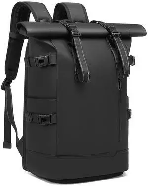 GYakeog Unisex 33L Waterproof Rolltop Backpack: 15.6-Inch Laptop, Lightweight Bike Bag Ideal for Work, School & Outdoor Use (Black Upgraded Version)