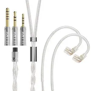 ARTTI Spark Earphone Upgrade Cable 2 Cores 244 Strands Silver-Plated Copper 7N OCC HiFi IEM Cable 2.5/3.5/4.4mm 3in1 Plug 2pin/MMCX/QDC Cable (Silver, QDC Straight Plug)