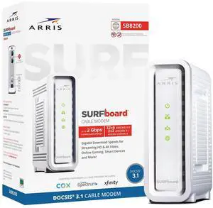 ARRIS SURFboard SB8200 DOCSIS 3.1 MultiGig Cable Modem ^^ 2 -1Gbps Ethernet Ports ^^ Works with Xfinity, Cox, Spectrum ^^ For Cable Internet Plans up to 2Gbps ^^ Modem Only, Router Required