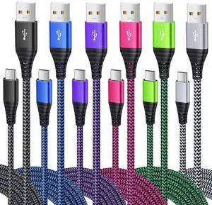 Besgoods USB Type C Charger Cable, 6-Pack 10ft USB C Cable Fast Charging Braided Type C Charger Cord for iPhone 16/15, Galaxy S24 S23 S22 S9 S10 A13 A15 A03s, Pixel-Black White Blue Green Purple Rose