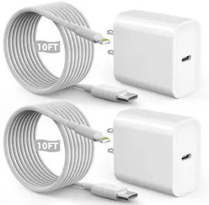 Fast iPhone Charger, Quick 10Foot USBC Wall Charger Phone Charge 2Pack PD USB C Fast Charge Block + Long 10FT Lightning Fast Charging Cable for iPhone 14/Pro/Pro Max/Plus/13/12/11/XS/XR/X/SE2022/iPad