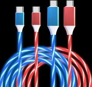 2 Pack Light up USB C to USB C Cable Fast Charging Cable LED Type C Charger Cord for iPhone 16 15 Series,iPad Pro,Pixel,Samsung Galaxy S23/S24 39inches (Blue&Red)
