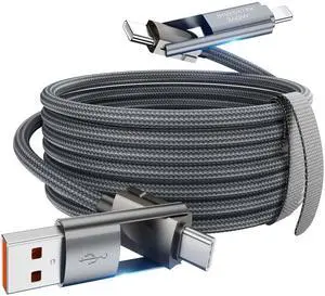 4 in 1 Charging Cable, 240W USB to USB C Cable 10 ft 2 Pack, Fast Charging Multi Charger Cord with Type C/USB A/L Port for iPhone 16/15 /14 Series MacBook iPad Pixel Samsung Switch PS5 Tablet and More