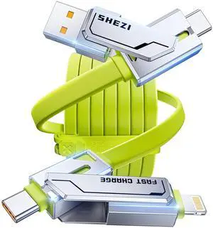 [2025 Upgrade] 4-in-1 USB C Cable 60W 5FT Compatible With Lightning Cable [Fast Charging & Data Transfer] Flat Type C/A to C/L Cord for iPhone/iPad, Multi Charger Wire Combo for All Devices (Green)