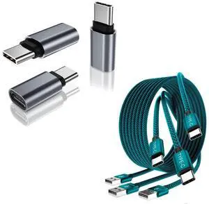 USB Type C Charger Cable 3.3/6.6/10FT Bundle with Thunderbolt 3 OTG Adapter,Compatible with MacBook Pro,iPad Air 4th Mini 6,S21,Microsoft Surface Go,Galaxy Note 20 S20 Plus Ultra (3Cables +3Adapters)