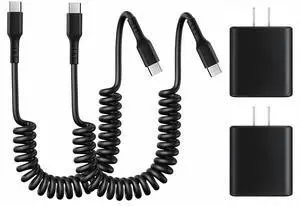 USB C to USB C Cable 6ft, 2Pack Coiled USB C Charger Cable Car, Type C Fast Charging for Cable for iPhone 17/16/15/Plus/Pro/Pro Max/MacBook Pro 2020/iPad Pro 2020/iPad Air 4/Samsung Galaxy S23