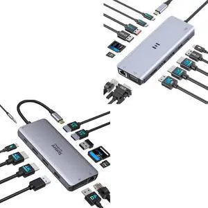 Selore 13-in-1 Docking Station Triple Monitor + 12-in-1 USB C Docking Station Dual Monitor