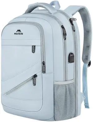 MATEIN Laptop Backpack 17 Inch, Womens Large Work Commute Backpack with USB Charging Port, Water Resistant Anti Theft Computer Bag for Students, Travel Daypack with Luggage Strap, Haze Blue