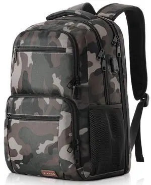 YALUNDISI Vintage Backpack Travel Laptop Backpack with usb Charging Port for Women & Men College Backpack Fits 15.6 Inch Laptop Camouflage Gray