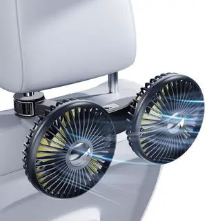 Dealswin Rechargeable Car Fan for Backseat Kids Baby, Battery and USB Dual Power Car Fans, Powerful 3 Speeds 360 Rotatable Dual Head Cooling Car Seat Fan for Sedan SUV RV Truck Vehicle