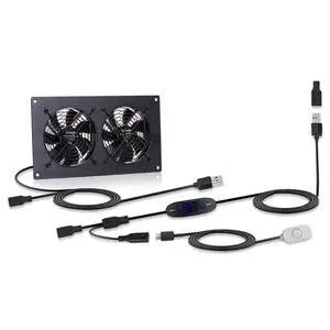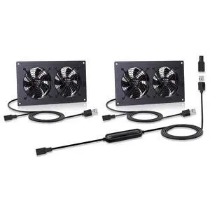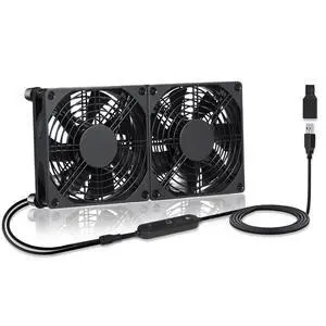 xiaoqijia Dual 120mm USB/DC Silent Cooling Fan - 5V/12V Dual Voltage, 12-Inch, 6-Speed Adjustment,Timed Cycle Switch - for Home Theater AV Cabinets,Server Racks,Cupboards,Pet Nests,Greenhouses,(2 fan)