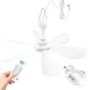 USB Powered Small Ceiling Fan 6 Blades Quiet DC 5V USB Hanging Fans for Indoor Outdoor RV Bed Room Dorm Desk Travel Camping Tent Cubicle Mini Portable Canopy Fans (White Remote Control)