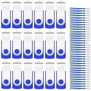 EASTBULL 8GB USB Flash Drive Bulk Thumb Drives 20 Pack with Lanyards USB 2.0 Memory Sticks Zip Drive Pen Drive for Storage and Backup Blue 20PCS 8GB