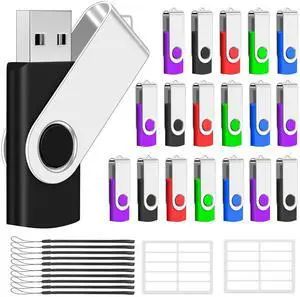 AreTop Bulk Flash Drives 4GB 20 Pack, Bulk USB 2.0 Flash Drives Thumb Drive Swivel Memory Stick Jump Drive Pen Drive with Lanyard (Mixed Colors 20pcs)