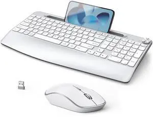 JOYACCESS Ergonomic Wireless Keyboard Mouse Combo, Full Size Wireless Keyboard Designed with Phone Holder and Wrist Rest,Volume Roller for Computer Mac PC Laptop-Silver