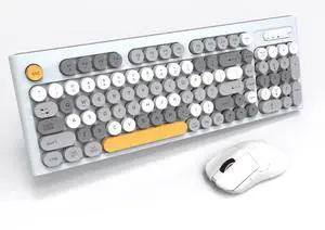 Wireless Keyboard and Mouse Combo, 104 Round Keys Cute Colorful Keyboard and Mouse with Retro Typewriter for PC/Mac/Laptop/Tablet/Computer/Windows Gray Green