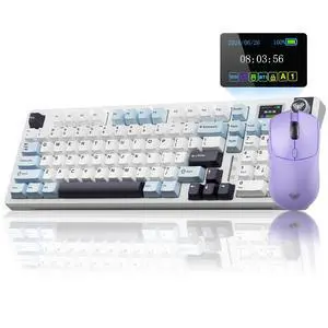AULA Wireless Keyboard and Mouse Combo, S98 Pro Mechanical Keyboards with Screen & Knob,Tri-Mode Hot Swappable Creamy Keyboard+SC580 Wireless Gaming Mouse Light Purple