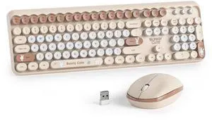 Mosptnspg Neutral Beige Keyboard and Mouse Wireless, 2.4GHz Full-Sized Cute Brown Keyboard Mouse Set with Retro Typewriter Round Keys for Girls Windows, Computer, Laptops, PC (Dot Neutral)