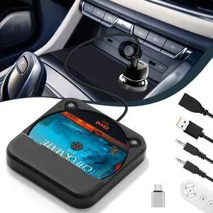 Dislind Portable USB CD Player for Car, Portable Car CD Player with USB-C Adapter & Extension Cable, External CDs Players for Cars Stereo Type-C Port, AUX Port, Vehicle, Truck, Laptop, TV - Black