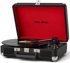 TANALNIN Vinyl Record Player, 3-Speed Bluetooth Portable Suitcase Turntable with Built-in Speakers, USB Recording, RCA Output, AUX Input/Output, Vintage Vinyl Player for Home, Bedroom or Gifting,Black