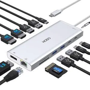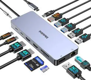 USB C Laptop Docking Station Dual Monitor for Dell/Lenovo/HP, 15 in 1 USB C Hub Multiport Adapter Dongle Dock USB-C to 2 HDMI 4K@60Hz, 8K DisplayPort, 2 USB-C 10Gbps, 5 USB-A, 100W PD, Ethernet, SD/TF