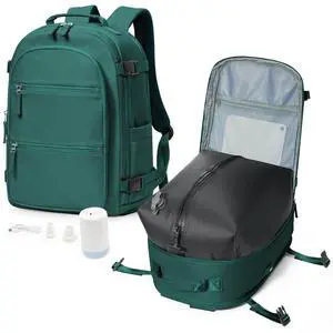 Travel Vacuum Storage Backpack with Air Pump Vacuum Seal Compression Space Saver Bags Clothing Vacpack 18x14x8 inches Travel Bag Carry on Personal item Laptop Work Backpacks Women DarkGreen