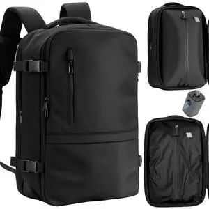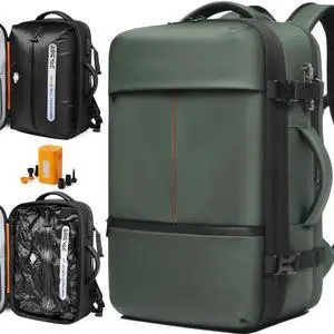 Cusangel backpack with vacuum compression,18in carry on expandable travel with pump 45L expandable 60L capacity laptop,multiple pockets (Business Vac-Backpack)