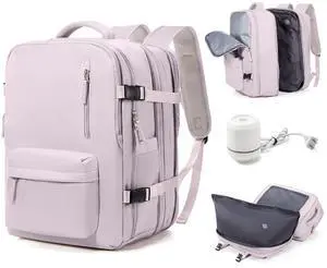Vacuum Travel Backpack with Pump for Men Women, Personal Item Carry on Backpacks Flight Approved 18x14x8 inches, mochila de viaje compresion al vacio, Waterproof Compression Backpacks(Pink)