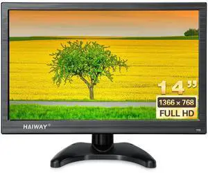 Haiway 14 Inch Security Monitor, 1366x768 Resolution Small PC Monitor Built-in Speakers with HDMI/VGA/BNC/AV Ports, Home Office Mini hdmi Monitors for Laptop, CCTV Camera, Gaming with Remote Control