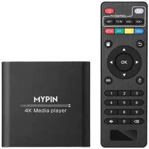 4K Media Player with Remote Control, Digital MP4 Player for 8TB HDD/USB Drive/TF Card/H.265 MP4 PPT MKV AVI Support HDMI/AV/Optical Out and USB Mouse/Keyboard-HDMI up to 7.1 Surround Sound (Black)
