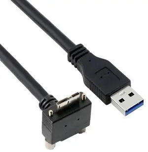 CY Cable Micro USB3.0 Dual Screws Locking to USB3.0 Data 5Gbps Power Cable 90 Degree Down Angled Type for VR Industrial Camera Computer (5.0m)