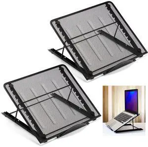 Dunzoom 2 Pcs Mesh Laptop Stands 10 Levels Large Adjustable Laptop Riser Holder Computer Stand for Desk Cooling Ventilated Universal Lightweight Ergonomic Tray for Diamond Painting Reading