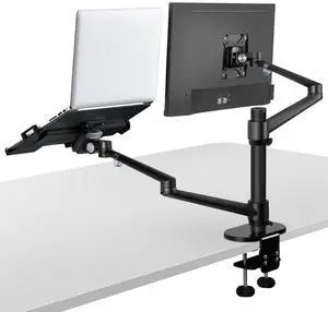 Viozon Monitor and Laptop Mount, 2-in-1 Adjustable Dual Arm Desk Mounts Single Desk Arm Stand/Holder for 17 to 32 Inch LCD Computer Screens, Extra Tray Fits 12 to 17 inch Laptops (Black)