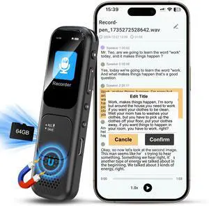 64GB Magnetic Digital Voice Recorder - 40 Hours Continuous Recording Device Voice Activated Recorder with AI-Intelligent Triple Noise Reduction - Audio Recorder Device for Lectures Meetings Interviews