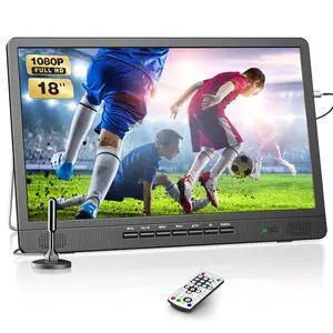 Desobry 18.2" Portable TV with Antenna, 1080P LED TV with HDMI Input/AV Input/USB Port, Small TV for Kitchen, Camping, RV, Bedroom, Patio, Indoor Outdoor Portable T V Built-in Stand