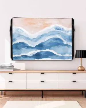 Outdoor TV Cover for Outside Flat Screen,Beach Blue Gradient Ocean Wave 600D Thick Waterproof Weatherproof Outdoor TV Screen Protector with Zipper for 60 to 65 Inch Flat Screens Abstract Geometric