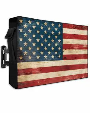 Vintage USA Flag Outdoor TV Cover for Outside Flat Screen Televisions, 4th of July Independence Day on Letter Weatherproof TV Screen Protector with Zipper for 60 to 65 Inch Screens