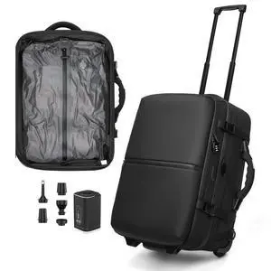 POIXM Rolling Vacuum Seal Backpack for Travel, with Hidden Pull Rod, Weight Handle, TSA Lock, Charging Port, fit 19" Laptop, Water Repellent, Carrry-on Luggage for Trip (Vacuum Pump Included)