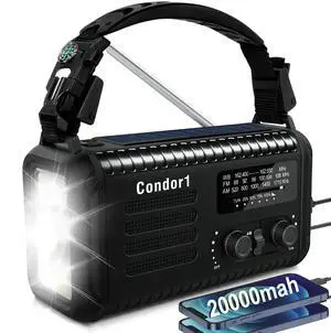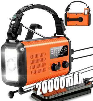 20000mAh / 74000mWh Emergency Radio, Solar Hand Crank Radio AM/FM/NOAA Weather Radio, Battery Powered with Cell Phone Charger, SOS Alarm, Flashlight & Reading Lamp for Emergencies Hurricane Camping
