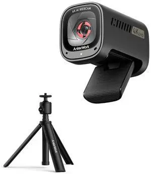 AnkerWork C310 4K Webcam & AnkerWork Mini Tripod, 12MP, 4K@60FPS HDR, AI Auto Focus, Framing, Noise Canceling Mic, Aluminum, Black, Compatible with Webcams, Cameras up to 1.5kg