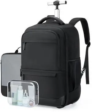 star cloud 21x14x9 Rolling Backpack with Wheels - Water-Resistant, 17.3" Laptop Compartment, Ideal Carry-On for Overnight Travel, College, Work - Wheeled Business Backpack for Adults
