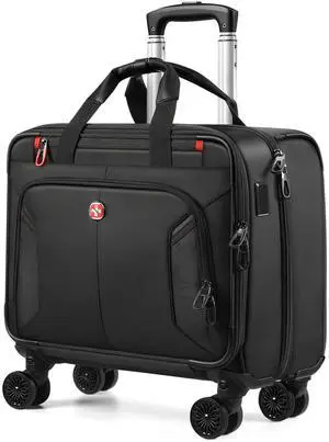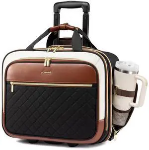 LOVEVOOK Rolling Laptop Bag Women, 17.3 Inch Laptop Briefcase with Wheels, Soft Sided Underseat Carry On Luggage Personal Item Suitcase for Work Travel Business, Black Brown Beige