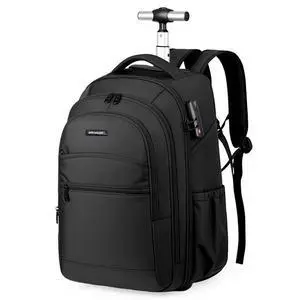 Mfinesun Rolling Backpack, 17 inch Laptop Backpack with Wheels, Carry on Luggage Business Bag with USB Charging Port, Combination Lock, Travel Roller Backpack