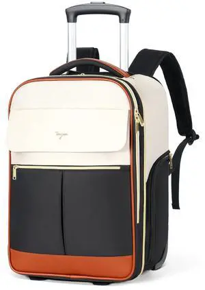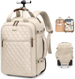 Tonyeee Rolling Backpack for Women, Large Travel Backpack with Wheels Carry on Flight Approved, 17 Inch Laptop Wheeled Roller Bag Suitcase for Work Bussiness Weekender (Beige,L Carry on Size)